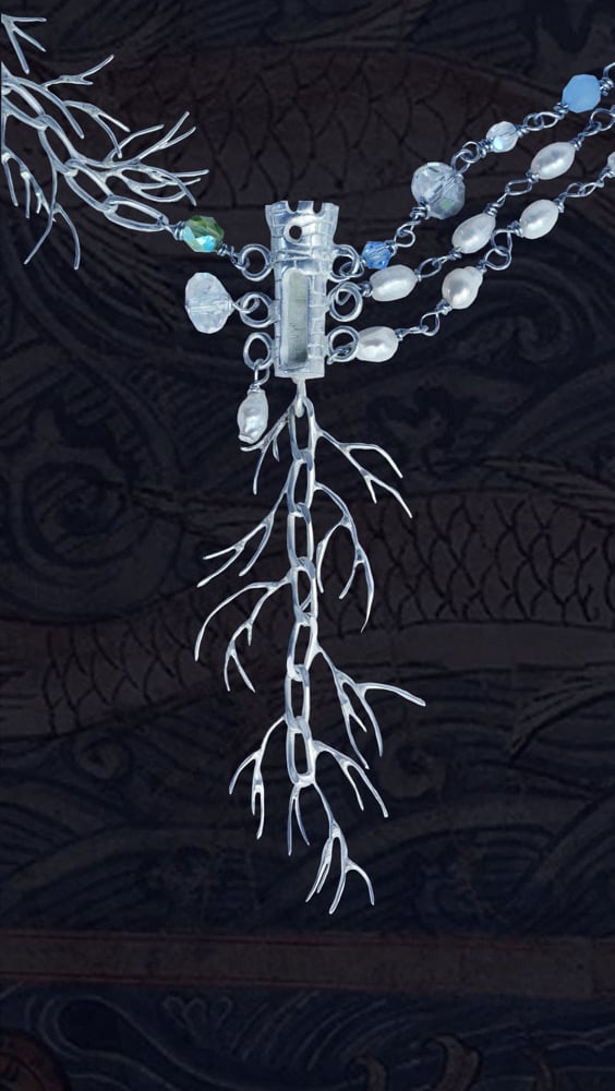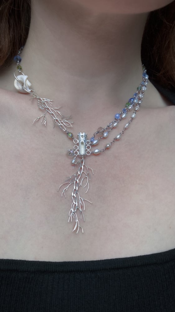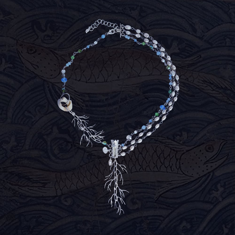 Collier en agent, perles d'eau douce et perles de verre